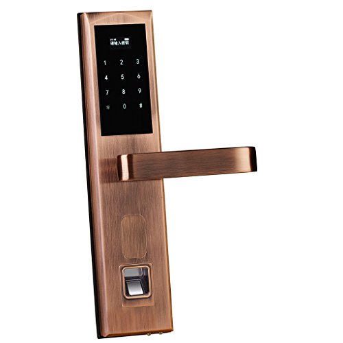 SunniMix 電子 タッチスマート ドアロック パスワード 先進指紋技術 指紋認証 ドアロック 防水 盗難防止 安全性 全2色 - 銅