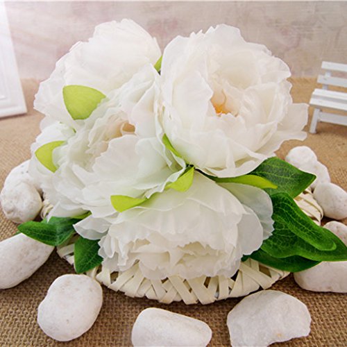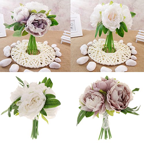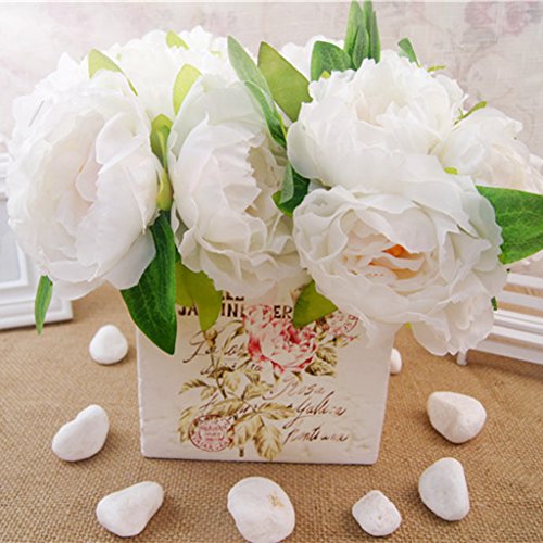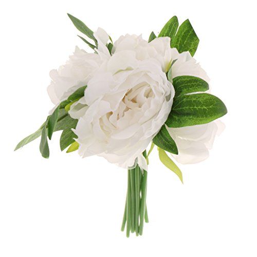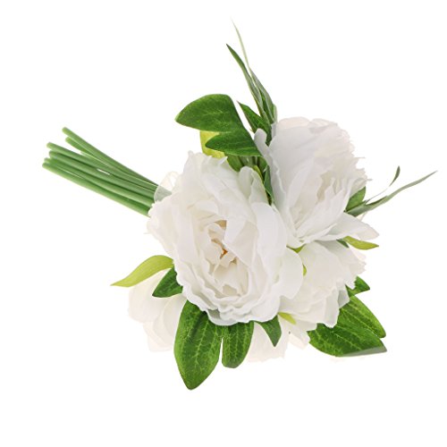 SunniMix 1束 人工牡丹 造花 花束 母親の日 卓上のセンターピース 全2色 - 白