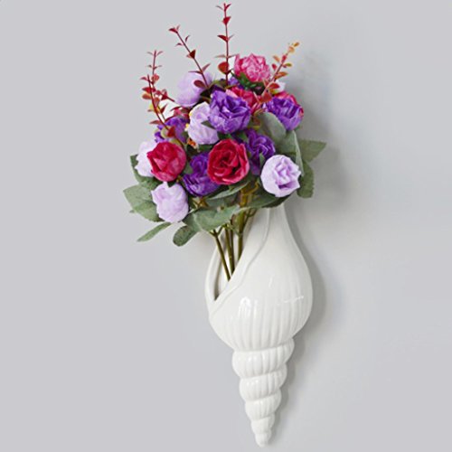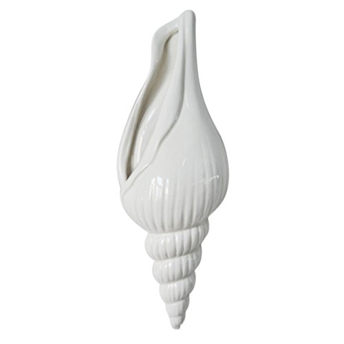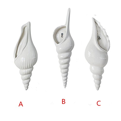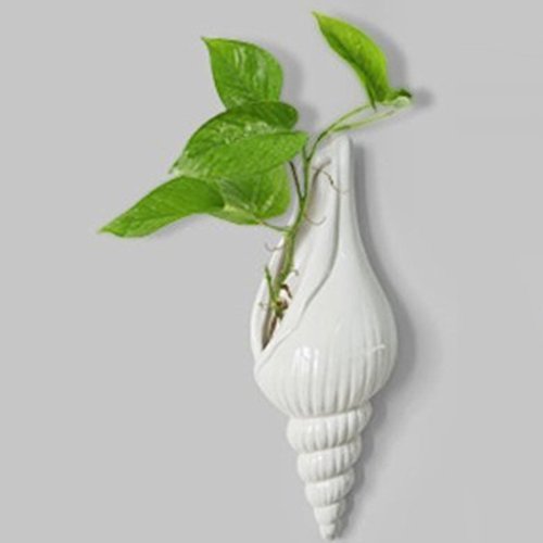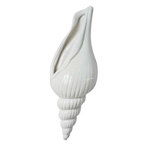 SunniMix 現代的 白い 陶器 海 貝殻形 花 水耕栽培 花瓶 壁 家 装飾 ぶら下げ 飾り 3サイズ選べる - 1#