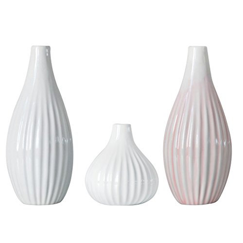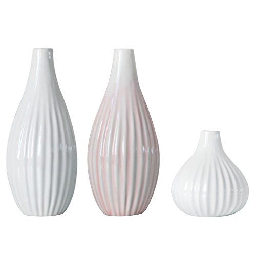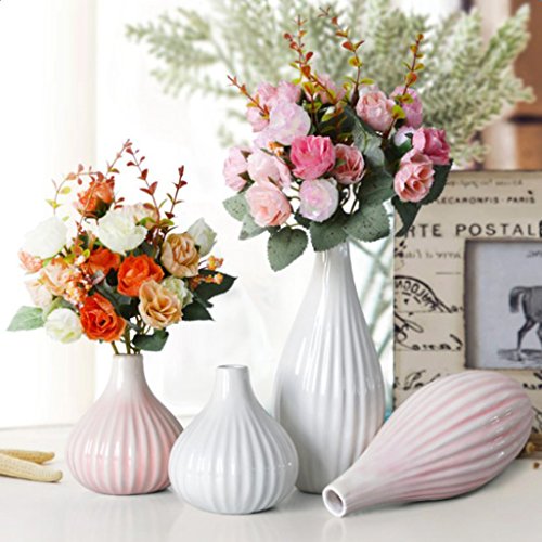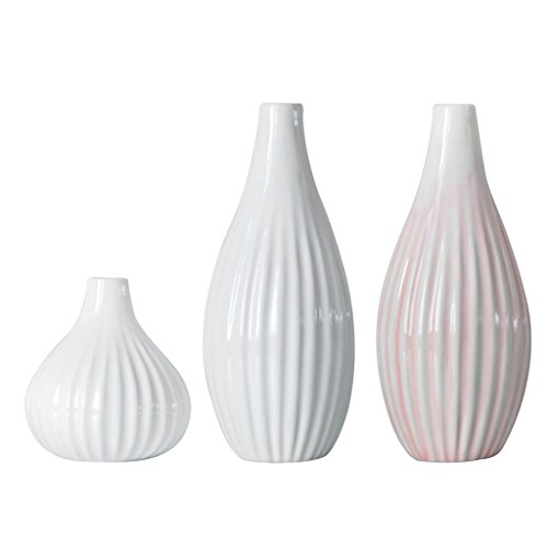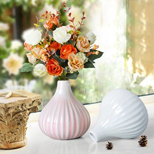 SunniMix 全3種選べる 現代的 デザイン 樹脂製 クラシックストライプ フラワーポット 植物 花 オフィス テーブル 花瓶 - ホワイト, S