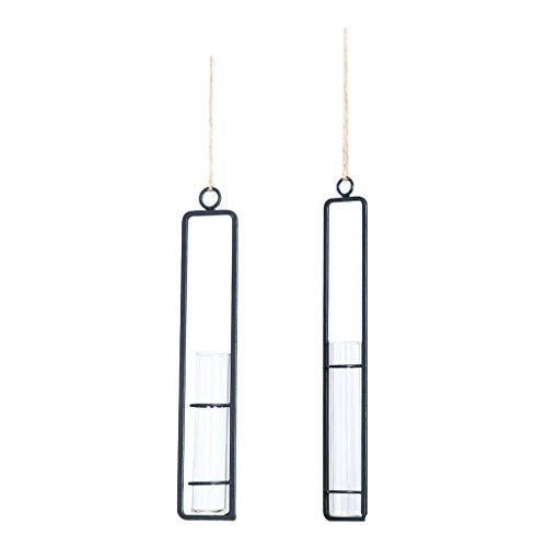 SunniMix 繊細 デザイン 透明 ガラス 高品質 花瓶 錬鉄 試験管型 吊り 装飾工芸品 2個入り
