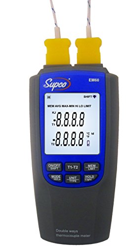 Supco EM60 Dual-Channel Differential Digital Thermocouple Thermometer with Probes, -200 to 1300 Degrees C, -328 to 2372 Degrees F, Accuracy of + or - 0.1% of reading + 0.7 Degree C [並行輸入品]