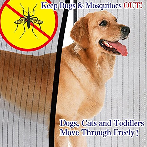- マグネット網戸 - 網戸のサイズは72インチx80インチ。最大70インチx79インチまでのドア(フレームなし)に適合します。網戸はドアフレームに貼り付けられます。先にサイズを計ってください。