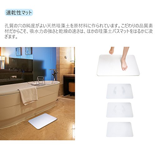 - 【吸水性&速乾性】本製品は漂白加工処理をしていないA級品なので、漂白加工処理をした製品より吸水性が高いです。特に孔質の穴の純度がよい天然珪藻土を原材料に作られています。こだわりの品質素材だからこそ、吸水力の強さと乾燥の速さは、ほかの珪藻土バスマットをはるかに凌ぎます。使いやすいデザインに仕上がりました。強度も申し分なく、既存商品と変わらず水分を吸収いたします。