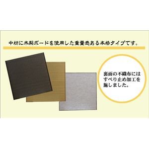 【出荷目安】:3 - 11営業日 ※土日・祝除く 【同梱区分】:TS 1678 【梱包サイズ】:大型商品 ・この商品は、配送希望日と時間帯をご指定可能です。 ・配送希望日は出荷目安(最長)の 2 - 30 日後の間でご指定ください。 ・最短でのお届けをご希望の場合は「指定なし」を選択してください。 ※沖縄・離島へのお届けの場合は配送希望日のご指定をお受けできかねます。 ※発送先エリア等で御希望に添えかねる場合があります。 ※在庫状況により、発送が遅れる場合がございます。 届いたユニット畳を床に置くだけで和のスペースが出来上がります。染めたイ草をふんだんに使用し、同色の色のヘリを付けることでモダンな雰囲気に仕上げました。ベージュ色とブラック色の2色を市松柄に並べても、また違ったイメージをお楽しみ頂けます。国産(九州産)のい草を使用しています。一本一本が太く、表皮が厚く、繊維がキメ細かいので弾力性があり、耐久性に優れています。い草には空気の自然浄化作用、湿度の調節作用などがあります。また汚れにくく、使用するうちに黄金色に変化し、味が出ます。中材に木製ボードを使用した重量感のある本格タイプです。裏の不織布にはすべり止め加工を施しています。また木製ボードとイ草生地の間にフェルト10mmを使用していますので、硬すぎず、やわらかすぎない適度なクッション性があります。 【サイズ】 約82×82×2.5cm 【素材】 表地=い草(九州産) ※普通織 中材=フェルト10mm+木製ボード 裏地=すべり止め不織布 ヘリ=綿85%、麻15% 【原産国】 日本製(純国産) 【特記事項】 画像のカラー・サイズ・セット内容とは異なる場合がございます。 商品名のカラー・サイズ・セット内容をご確認下さい。