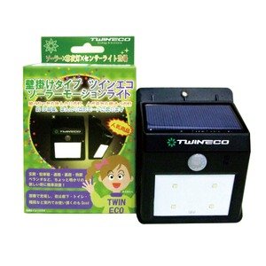 - 【出荷目安】:2 - 8営業日 ※土日・祝除く 【同梱区分】:TS 1909 【梱包サイズ】:通常商品 電源不要!電気代ゼロ!簡単設置!メンテ不要! 大好評のソーラーモーションライトによりコンパクトな壁掛けタイプ登場! 110gと驚きの軽さで誰でも簡単に設置できます。 日中に太陽光で発電・充電し、暗くなると薄明るい常夜灯になります。人が近づくと強く光ります。いなくなると10秒ほどで常夜灯に戻ります。軽量!スタイリッシュ!コンパクト!電源不要!照度&人感センサー内蔵!常夜灯にも! 電源不要なうえ、160グラムと軽量・コンパクトなのでベランダや玄関など場所を選ばず取り付けは容易です。ライトは昼光色(白)になります。 【商品名】 ツインエコソーラーモーションライト壁掛けタイプ(2015年モデル) 【型番】 TESSSL09P 【電源】 太陽光 【メーカー/販売元】 ツインエコ 【生産国】 中国 【カラー】 白 【材質】 ABS 【本体サイズ】 幅×奥行×高さ:11.5cm*8cm*4cm …★以降詳細は【商品の説明】文面をご参照下さいませ★
