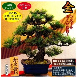 【出荷目安】:1 - 15営業日 ※土日・祝除く 【同梱区分】:TS 2016 【梱包サイズ】:通常商品 繊細さと美しさを兼ね備えた精密工芸盆栽 特徴 本物そっくり・お手入れ不要 床の間・玄関・リビングに飾って吉兆を! 繊細さと美しさを兼ね備えた精密工芸盆栽 一点一点手作りのため、色・サイズ・重さ等が若干異なる場合がございます。 商品名 鈴木豊伯 松金盆栽 素材 ポリエチレン、針金、バーミキュライト、スタイロホーム、陶器 サイズ (約)幅28x奥行18x高さ28cm 原産国 日本