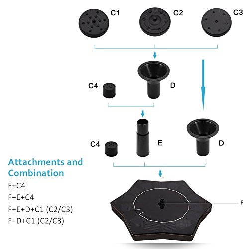 - 【庭を美しくする:】太陽水噴水には6種類のノズルがあり、好きなスプレーウォーターパターンを選択できます。 鳥、蝶などの小さな動物がここに引き寄せられ、あなたの庭はよりダイナミックで美しくなります。