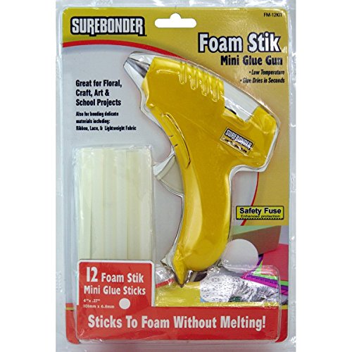 Sticks to foam without melting the foam. Great Glue Gun for Floral, Craft, Art & School Projects. This MADE IN THE USA glue is formulated to be used on foam and will not melt the foam and the glue dries in seconds. Can also be used on delicate materials. Glue is made in the USA.