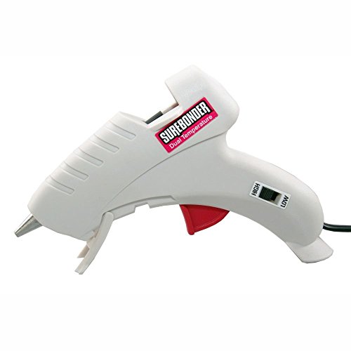 Built in stand. Sure bonder Mini Dual Temperature Glue Gun is ideal for crafts, floral and do-it-yourself projects. Go from high to low temperature to low to high temperature with the flip of a switch. Use the low setting for bonding delicate materials such as lace, ribbon, foil, floral foam and fabric. The higher temperature better bonds metals, plastics and ceramics. Use the gun safely at 100 Degree on the lower setting.