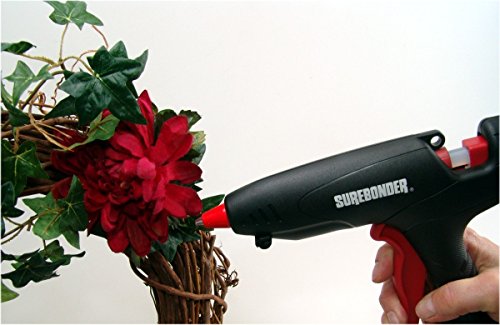 Insulated nozzle. Surebonder PRO2-80 Industrial High Temperature Glue Gun delivers 2.5 pounds of glue per hour with 80-Watts of heating power that is ideal for any industrial type applications or large craft projects where a higher volume of adhesive output is required. Solid state PTC (positive temperature control) heaters. Ergonomic design long trigger for less effort. The PRO2-80 features an insulated nozzle, removable wire stand and sleek design. For best results use 7/16-Inch (.443-Inch) standard glue sticks.