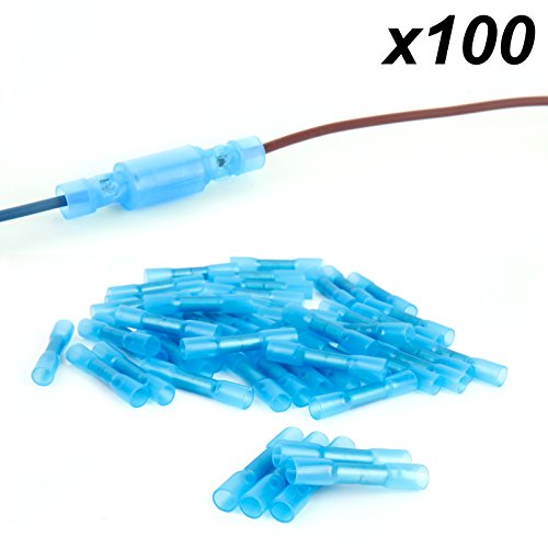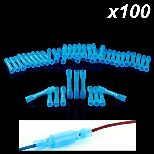 絶縁・防水 圧着接続端子 圧着電気端子 熱収縮コネクター 熱収縮バット ワイヤーコネクター 100本セット ブルー