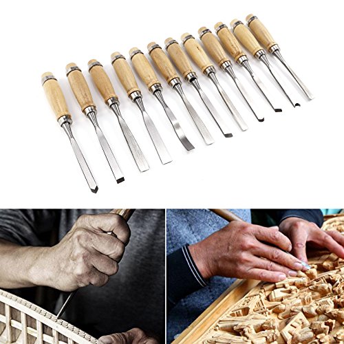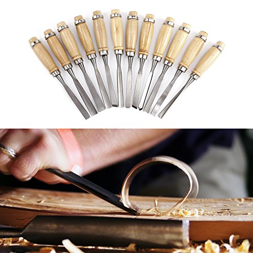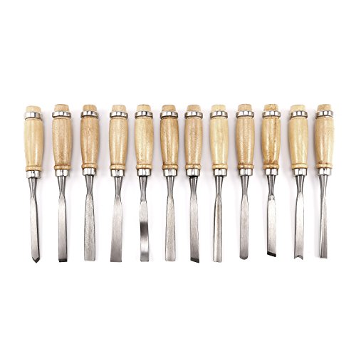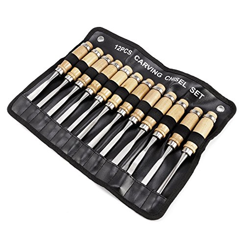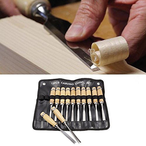 - ハイグレードのウッド製彫刻のチゼル、12本セット、皮製収納袋つき!