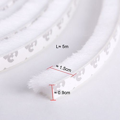 ドア・窓用 隙間テープホワイト 毛足 5M