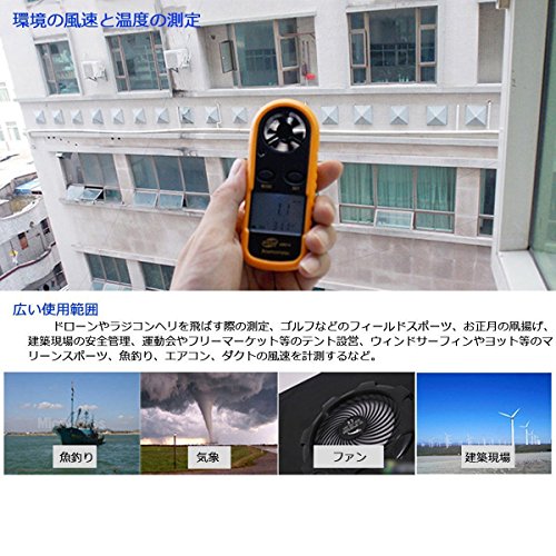 手軽に使用できる簡単操作のデジタル風速計!温度計も付いた便利なポケットサイズ、見やすいバックライト付きデジタル液晶表示。 滑り止めになるシリコンカバー付!必要なときにつけたり外したり便利に使えます 用途:ドローンやラジコンヘリを飛ばす際の測定、ゴルフなどのフィールドスポーツ、お正月の凧揚げ、建築現場の危険管理、運動会やフリーマーケット等のテント設営、ウィンドサーフィンやヨット等のマリーンスポーツ、魚釣り、エアコン、ダクトの風速を計測するなど。