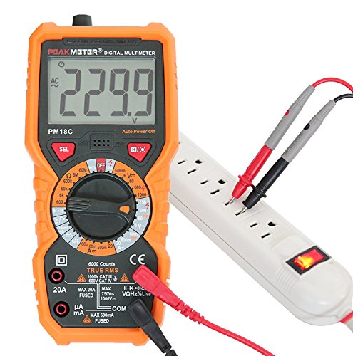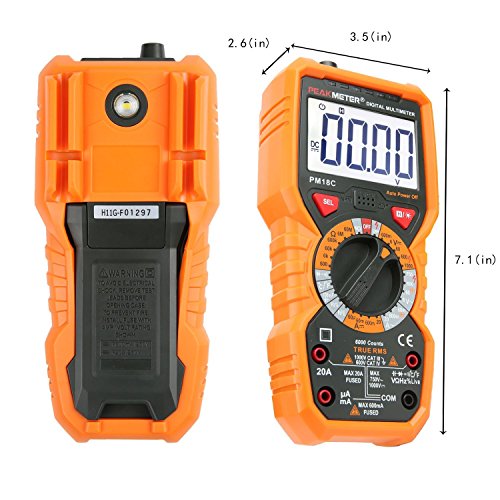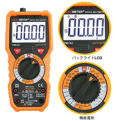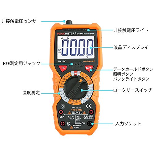 Sutekus 【1年間保証】デジタルマルチメーター PM18C 高精度 6000カウント 多機能 電流・電圧・抵抗・温度・キャパシタンス・周波数テスター バックライト大型LCD表示 データ保持機能 照明ランプ機能 非接触電圧測定 携帯式 日本語説明書PDF