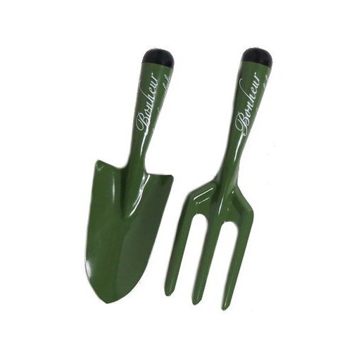 お庭のお手入れに欠かせないスコップとフォークの2本セット。丈夫なスチール一体型で、ナチュラルな持ち手のロゴがポイント。かすれたロゴデザインで雰囲気も◎正面にスクリプト書体のフランス語の「Bonheur」(幸福)「Le jardin ensoleile」(日だまりの庭)文字があしらわれています。インテリア感覚で飾ってもオシャレなガーデニングツールです。