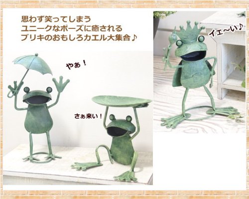 思わず笑ってしまうユニークなポーズをしたおもしろカエルの置物です。ほんわか和んで可愛いブリキのほのぼのとした印象にとっても癒されます。飾るだけでお部屋や玄関、お庭の空間を楽しく演出してくれます。
