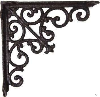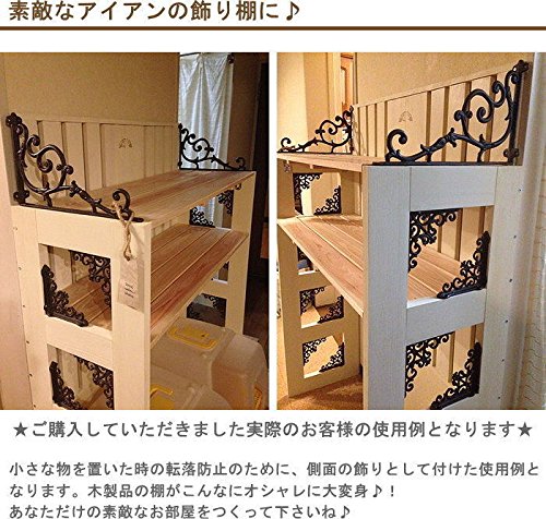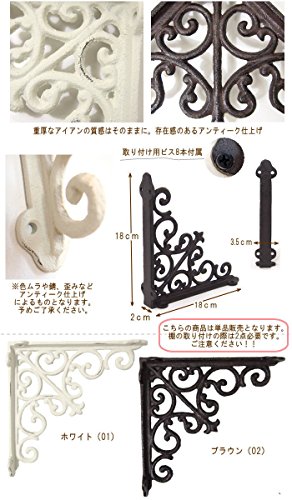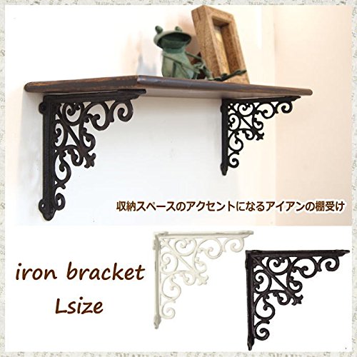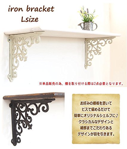- 存在感あるアンティーク仕上げのおしゃれなアイアン棚受けブラケット。クラシカルなデザインと細部までこだわりのあるデザインが目を引きます。