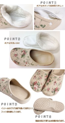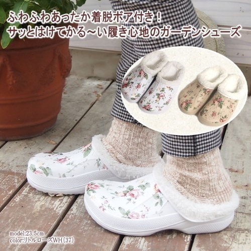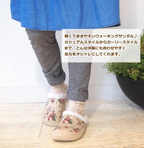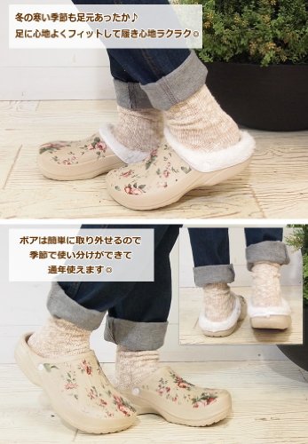 着脱できるボア付きであったか!とっても軽くて履きやすいロックスタイプのサンダルです。お買い物やお散歩などのちょっとしたお出掛けにもサッと履けて脱ぎ履きも楽チン♪足先から甲までおおったサボサンダルの形は固定される範囲が大きいので履きやすく歩きやすいのが特徴!!ぺたんこ靴なので長時間履いていても疲れません。お庭いじりのガーデンシューズとしても活躍してくれます。普段の外出にはもちろん、とっても軽く滑りにくいので室内履きのスリッパとしてもおススメです。ボアはボタンで取り外して手洗いができるのでお手入れラクラク◎季節によって使い分けて通年着用できるかわいいサンダルです。