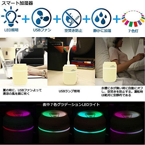 - 景品付属:USB扇風機とLEDランプ付き。USB式ファン配合使用し、噴霧拡散を加速出来。また夏の際に、USBファンの風と噴霧を組み合わせれば清涼の風を顔に吹き来るなんて気持ち良い。省エネLED式電気をミニスタンドとして使用出来、ノートブック / Mac、 パソコン、 コンピューター、 iPad、USB ポート付くソケットやモバイルバッテリー等対応する電灯