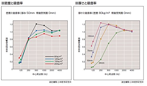 - 低周波から高周波までベストバランスの吸音率(グラフ参照:密度80kg/m3 厚み50mm)