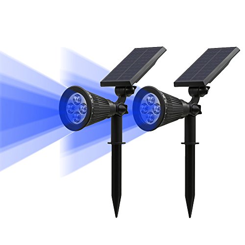 T-SUN ソーラーライト 4LED ガーデンライト スポットライト 省エネ 屋外用充電式 防水加工 暗くなると自動点灯 FCC認証取得 玄関先 芝生 階段 庭など対応 LED照明 (ブルー 2点セット)