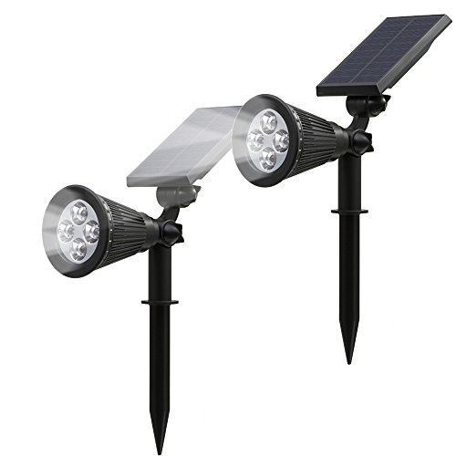 T-SUN ソーラーライト 4LED ガーデンライト スポットライト 2点セット 省エネ 屋外用充電式 暗くなると自動点灯 6000K 昼白色 FCC認証取得 玄関先 芝生 階段 庭など対応 LED照明