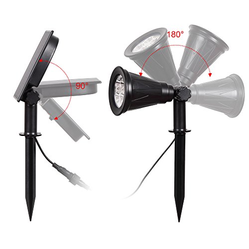 T-SUN スポットライト ソーラー ガーデンライト パネル分離式 ソーラーライト 4LED 昼光色 省エネ 屋外照明 防水 暗くなると自動点灯 玄関、芝生、庭など対応 LED照明 (4LED白光)