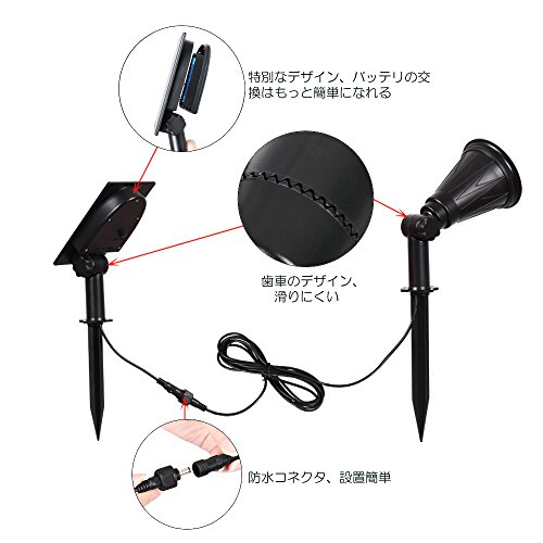- ご注意:陽光の直射状況と周囲温度の変化によりソーラースポットライトの充電状況も変わり、予めご了承いただきたくお願いします。初めてお使いの前、是非フル充電をお願い致します。
