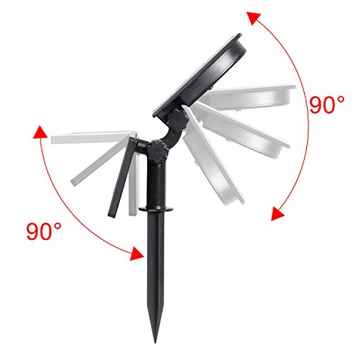 - スポットライトのソーラーパネルとライトの角度を180度も調節することができるので、思い通りに照明可能。防雨加工はされている上に、耐候性、耐久性にも優れています。