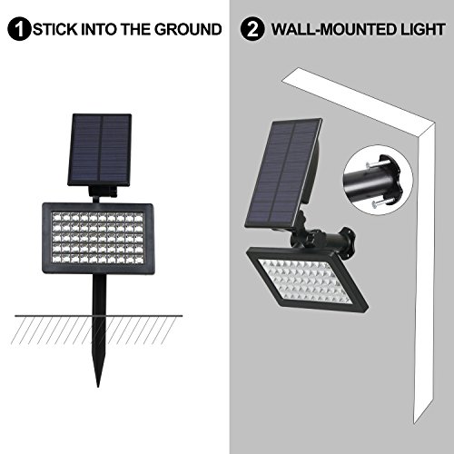 T-SUN 50LEDソーラーライト ガーデンライト アウトドアー スポットライト 新型 6000K 2点セット 省エネ 屋外照明 暗くなると自動点灯 ソーラー充電 防雨 玄関先 芝生 庭 ガーデン 車道 階段