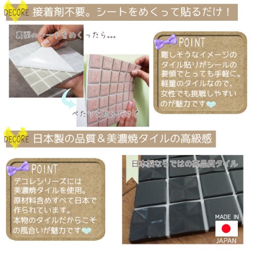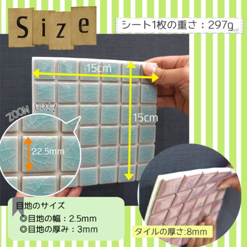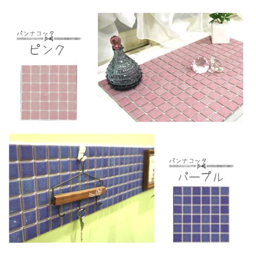 貫入いりのタイルを使用した【パンナコッタ】はニュアンスカラーが可愛らしい雰囲気。 - シートの裏面がシールになっているので、特別な接着剤を用意していただく必要はありません。