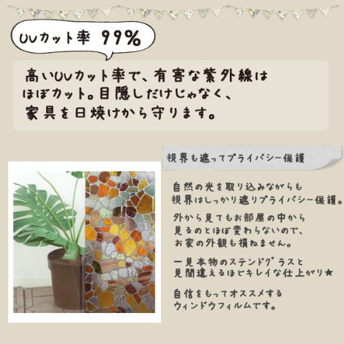 - 何度でも貼ってはがせるステンドグラス風ウィンドウフィルム