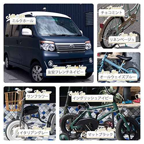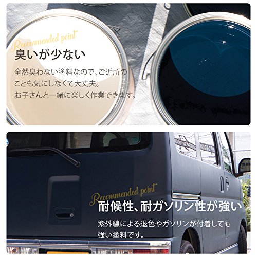 - ■耐候性、耐ガソリン性が強い→紫外線による退色やガソリンが付着しても強い塗料です。 ■全然臭わない塗料なので、ご近所のことも気にしなくて大丈夫。安心の日本製でお子さんと一緒に楽しく作業できます。
