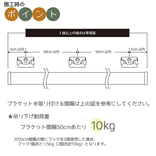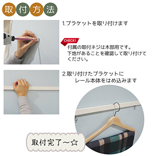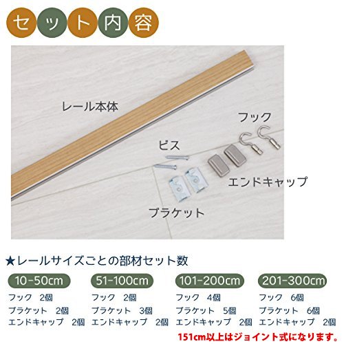 - 付属品:レール本体・フック・ブラケット・エンドキャップ ※151cm以上はジョイント式になり、ジョイントが付属します。