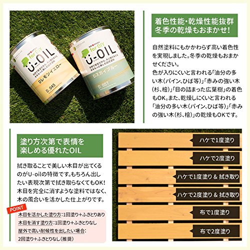 - ■用途:屋内、屋外共用 木部専用 ■材質:精選亜麻仁油、紅花油、顔料、無鉛乾燥剤