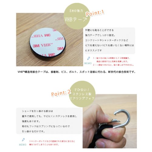 - フックの部分は屋外で使用しても錆びにくいステンレス製