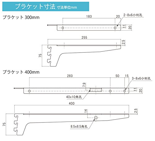 すっきり収納 棚柱 ESラック 棚板用ブラケットセット 左右セット D300mm JQ5