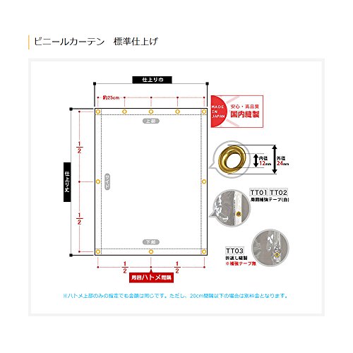 PVC アキレスビニールカーテン 0.5mm厚 サイズオーダー 【TT02】/▼幅50-120×丈101-150cm/JQ 透過性抜群 帯電防止 防炎