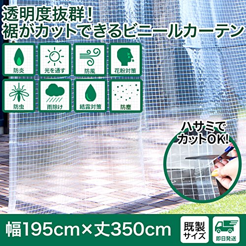 ビニールカーテン 防炎 屋外用 既製サイズ 屋内 Z3K 透明 糸入り FT06 幅195cm×丈350cm 0.35mm厚 裾を自由にカットできる!