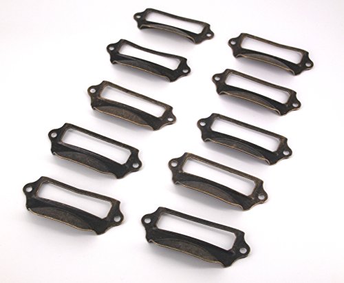 (CHOUCHOU) 10個 セット アンティーク 調 ネーム 付き キャビネット ハンドル 取っ手 金具 引き出し 家具 DIY (イエローブロンズ)