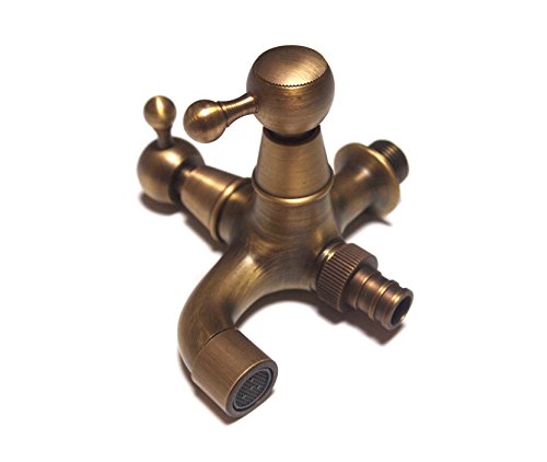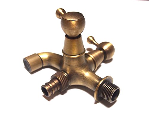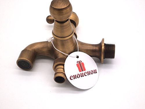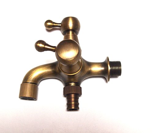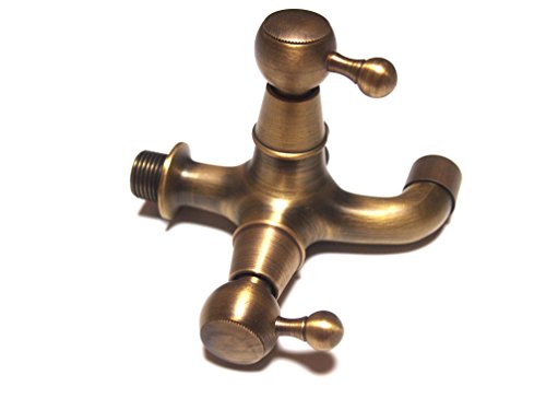 (CHOUCHOU) 庭の雰囲気作りに 北欧 風 アンティーク 調 真鍮 2口 蛇口 じゃぐち 水道 レトロ (1個セット)