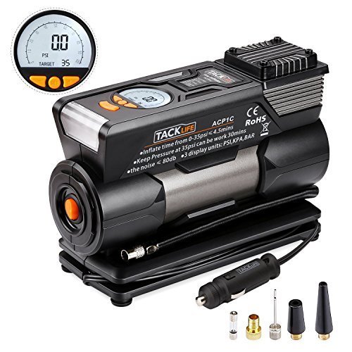 Tire Inflator、tacklife acp1 Cコンプレッサーポンプ、12 Vタイヤポンプwith Largerエアフロー35l/min、4ノズルアダプタ、2モードLEDライト、Extraヒューズと進行状況表示(100psi)