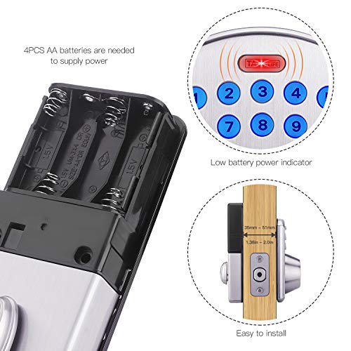 - 取り付け簡単 - 単一シリンダー電子デッドボルトは外部のキーパッドまたはキーで動作します。スクリュードライバーだけで取り付け簡単。厚さ1 3/8インチのドアにフィットします。 2インチの (35mm-51mm); フロントドア、サイド&バックドア、ガレージエントリドアなどに最適です。