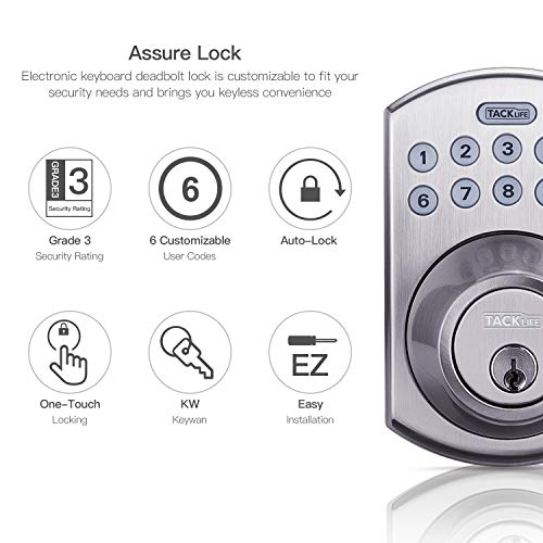Tacklifeの電子デッドボルトは、ワンタッチロック式電動デッドボルトです。 あなたのパーソナライズされたコードで、キーレスエントリーの利便性とバックライトキーパッドがあなたの家に入ることができ、視認性を高めます。