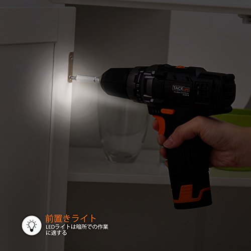 電動ドリル Tacklife PCD01B ドリルドライバー 12V 2000mAh 19 + 1段トルク 27N.m 正逆転可能 2段階速度 可変速度 高速充電 照明機能 電池残量表示 6Pcsドリルビット 6Pcsドライバービット 1Pcs延長ロッド コンパクト ケース付