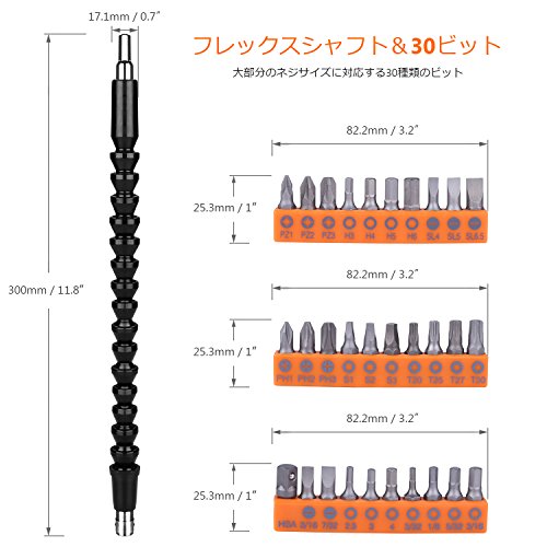 - ▲梱包内容:フレキシブルシャフト、30*ドライバービット、日本語取扱説明書、24ヶ月保証