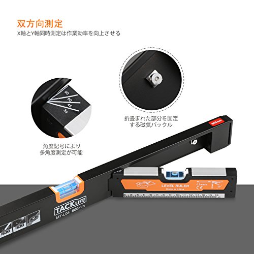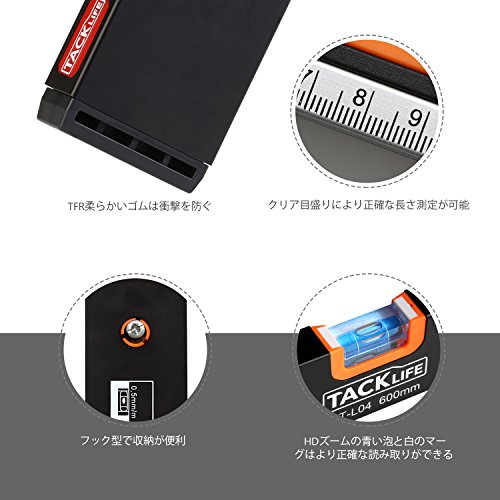 Tacklife MT-L04 水平器 600mm 2-in-1 水平/垂直/双方向測定 マグネット付 フック型 ハンディレベル