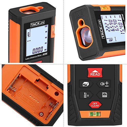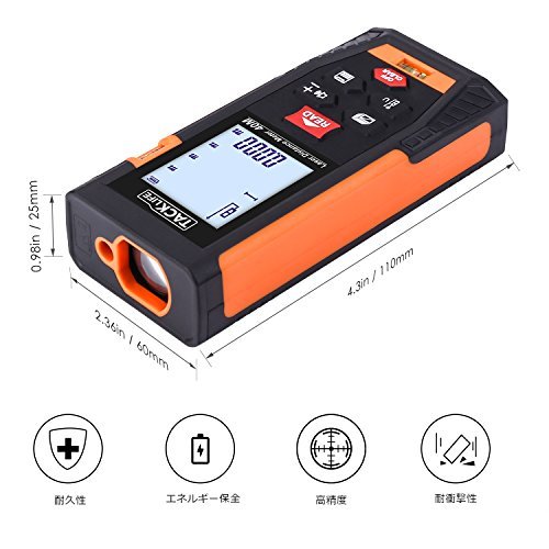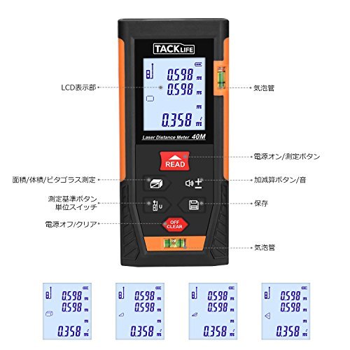 レーザー距離計 TACKLIFE HD40 レーザクラス2 最大測定距離40m ±2mm ミュート機能 バックライト搭載 LCDデジタル表示 IP54防塵防水 連続測定 日本語説明書